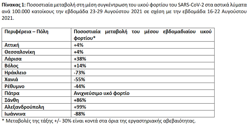 Ιωάννινα: Την τελευταία εβδομάδα, 23-29/08/21, στα Ιωάννινα,το μέσο εβδομαδιαίο ιικό φορτίο των αστικών
