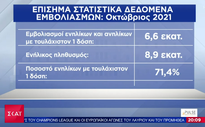 Τέλος, σημείωσε ότι το 73% σχεδόν των ενηλίκων στην χώρα μας έχει ήδη εμβολιαστεί, και πρόσθεσε για μία ακόμη φορά, ότι δεν θα πάμε σε περιοριστικά μέτρα όπως αυτά που είχαν εφαρμοστεί στα προηγούμενα κύματα της πανδημίας αποκλείοντας έτσι το lockdown.