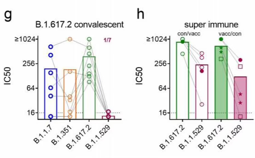 Υποδηλώνει ότι η προηγούμενη μόλυνση από την Delta χωρίς εμβολιασμό δεν προσφέρει ουσιαστικά καμία προστασία έναντι της νέας μετάλλαξης που επελαύνει παγκοσμίως. Δεν υπάρχει ακόμα ετυμηγορία όσον αφορά το αν τα αντισώματα της νόσησης προστατεύουν από κάποια σοβαρή επαναμόλυνση.