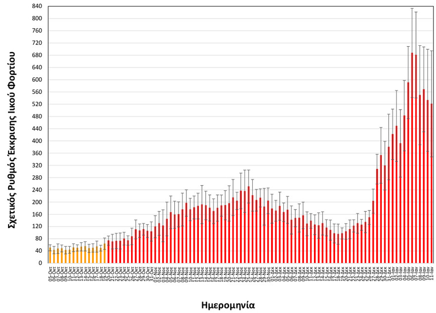 Συγκεκριμένα, στα δείγματα που λαμβάνονται καθημερινά στην είσοδο της Εγκατάστασης Επεξεργασίας Λυμάτων Θεσσαλονίκης, αναφορικά με τις εξορθολογισμένες τιμές σχετικής έκκρισης ιικού φορτίου, η μέση τιμή των δύο πιο πρόσφατων μετρήσεων, δηλαδή της Δευτέρας 10/01/2022 και της Τρίτης 11/01/2022 είναι:
