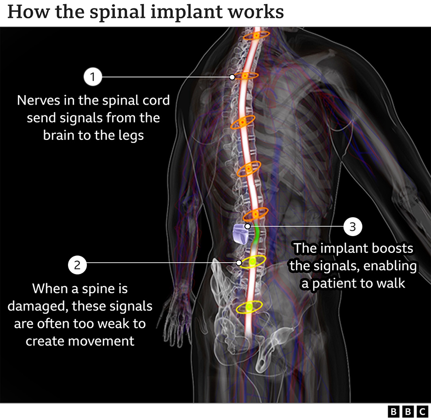 - Το εμφύτευμα ενισχύει τα σήματα δίνοντας τη δυνατότητα στον ασθενή να περπατήσει