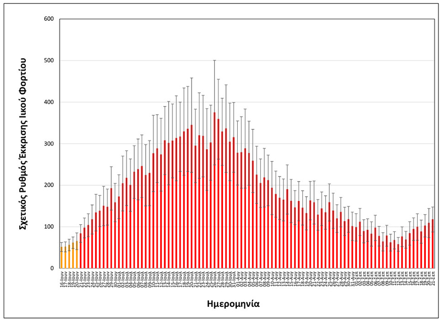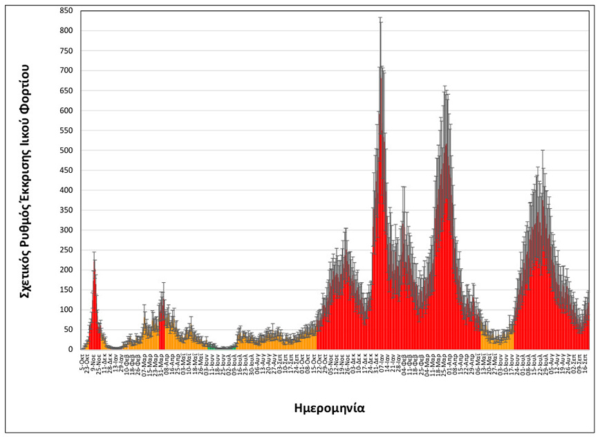 Η μέση εβδομαδιαία μεταβολή του φορτίου (από Πέμπτη 15/9 σε Τετάρτη 21/9) παρουσίασε αύξηση 46% και είναι η πρώτη τόσο σημαντική εβδομαδιαία αύξηση μετά από σχεδόν δυο μήνες αργής μείωσης. Παρόλα αυτά, το νέο κύμα ανάδυσης των ΒΑ4&5 προς το παρόν παρουσιάζει μικρότερη δυναμική σε σύγκριση με το πρώτο, στα τέλη Μαΐου.