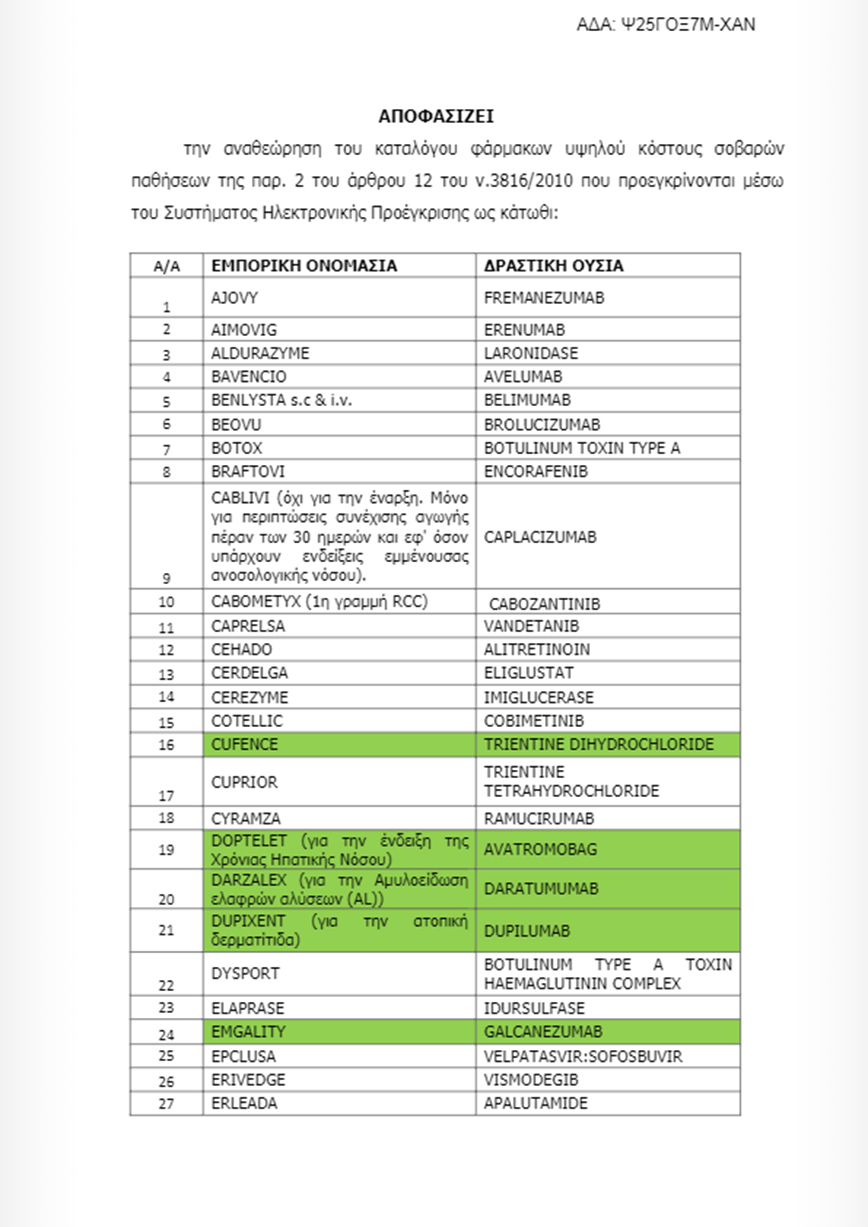 - EMGALITY (προφύλαξη από την ημικρανία).