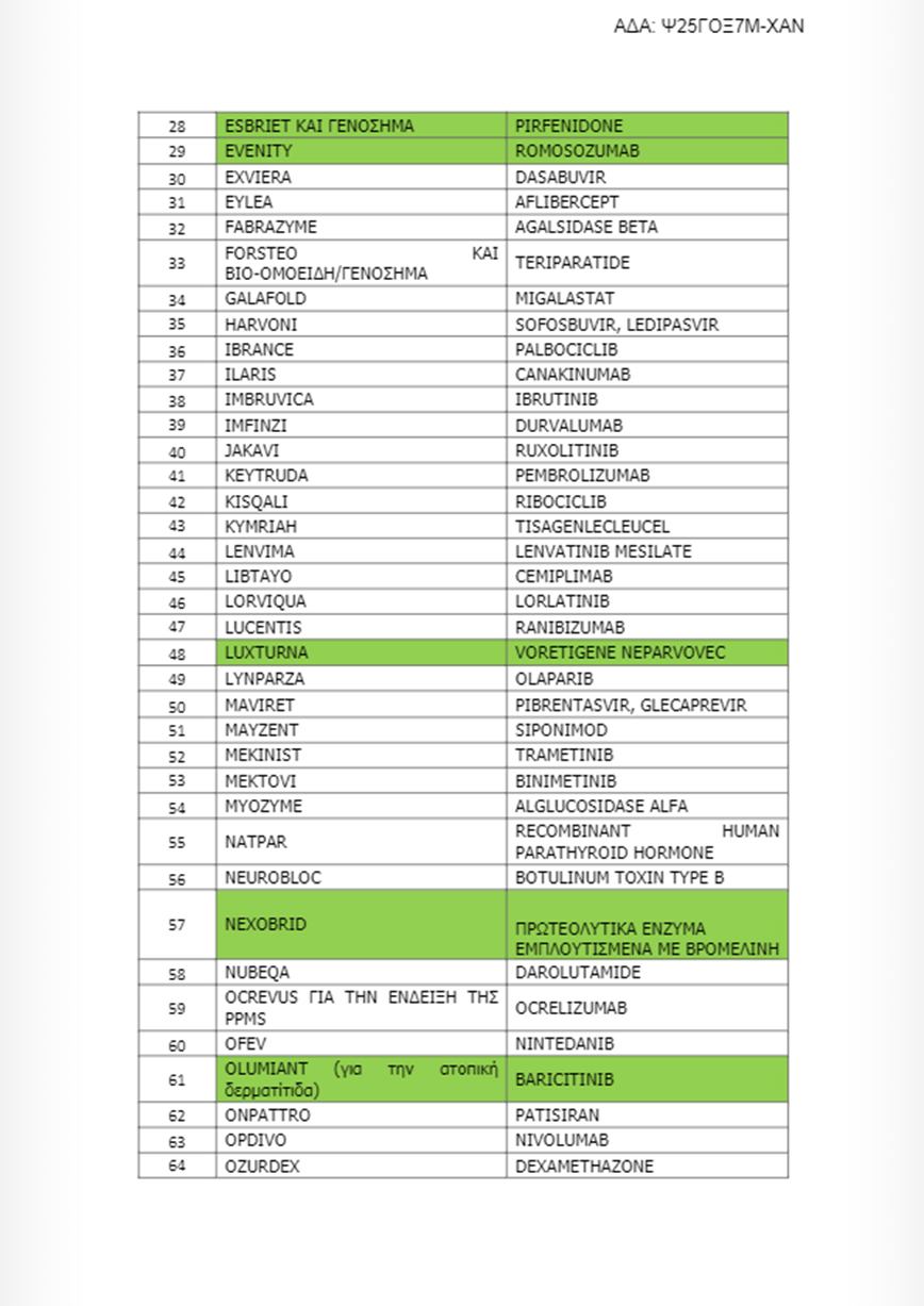 - EVENITY (σοβαρή οστεοπόρωση σε μετεμμηνοπαυσιακές γυναίκες με υψηλό κίνδυνο κατάγματος).