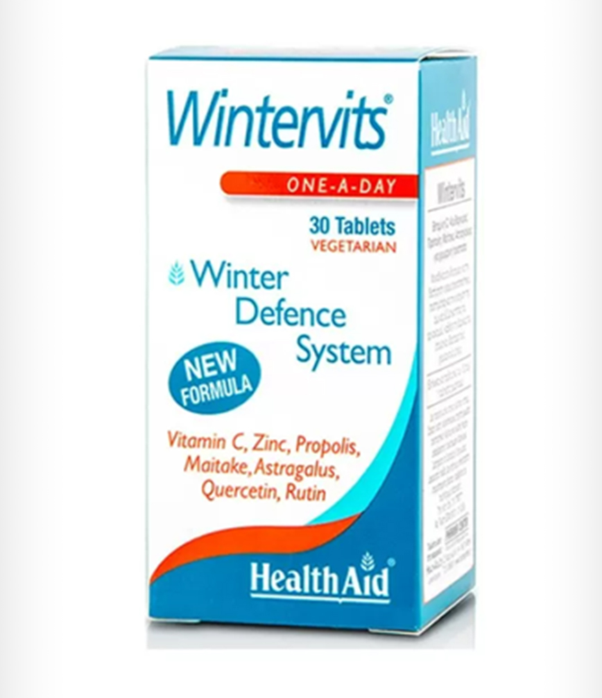 To Wintervits της Health Aid είναι σύνθεση που συνδυάζει την Βιταμίνη C με Ψευδάργυρο, Μαϊτάκε είδος μανιταριού με ιδιαίτερα τονωτικές ιδιότητες, Αστράγκαλους και Πρόπολη. Περιέχει φυσικά και βιοφλαβονοειδή Ρουτίνη & Κουερσετίνη και προσφέρει ολική προστασία του οργανισμού καθόλη τη διάρκεια του έτους και ιδιαίτερα τους χειμερινούς μήνες.