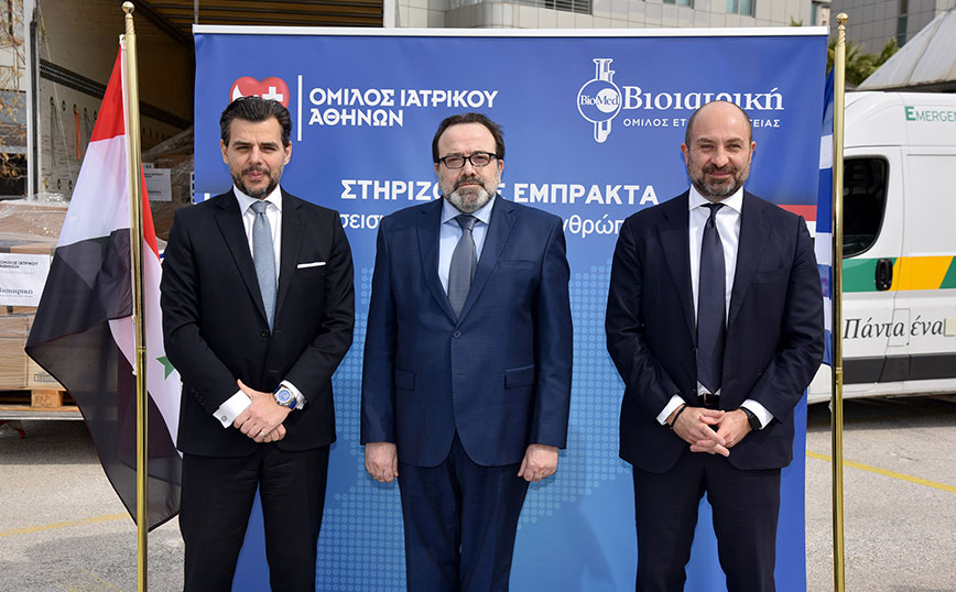 Ο Διευθύνων Σύμβουλος του Ομίλου Ιατρικού Αθηνών Δρ. Βασίλης Γ. Αποστολόπουλος κατά την παράδοση του υλικού δήλωσε: «Η βοήθεια και η στήριξη σε πληγέντες συνανθρώπους μας από φυσικές καταστροφές δεν πρέπει να γνωρίζει σύνορα. Δεν υπόκειται σε διακρίσεις. Ο Όμιλος Ιατρικού Αθηνών μαζί με τον Όμιλο ΒΙΟΙΑΤΡΙΚΗ προβαίνουν από κοινού σε μία ανθρωπιστική δράση για την ανακούφιση των πληγέντων από τον καταστροφικό σεισμό ξεκινώντας από τη Συρία. Η δράση μας αυτή αναδεικνύει τη βασική αρχή του Ομίλου Ιατρικού Αθηνών, που συνοψίζεται στην τοποθέτηση του ανθρώπου πάνω από όλα και εκδηλώνεται – μεταξύ άλλων – με πρωτοβουλίες αλληλεγγύης και κοινωνικής προσφοράς».