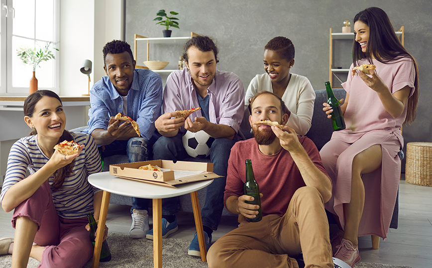 Αντιθέτως, η απόλαυση από το φαγητό, είναι κάτι τελείως διαφορετικό, καθώς συνδέεται με τα διατροφικά πρότυπα της εκάστοτε κοινωνίας και τις κοινωνικές διατροφικές συνήθειες. Παραδείγματος χάριν, στη Δύση είναι σύνηθες η κατανάλωση junk food και αλκοόλ κατά τη θέαση ενός αθλητικού δρώμενου, ειδικά αν πρόκειται για δημοφιλή αθλήματα, όπως το ποδόσφαιρο και το μπάσκετ.
