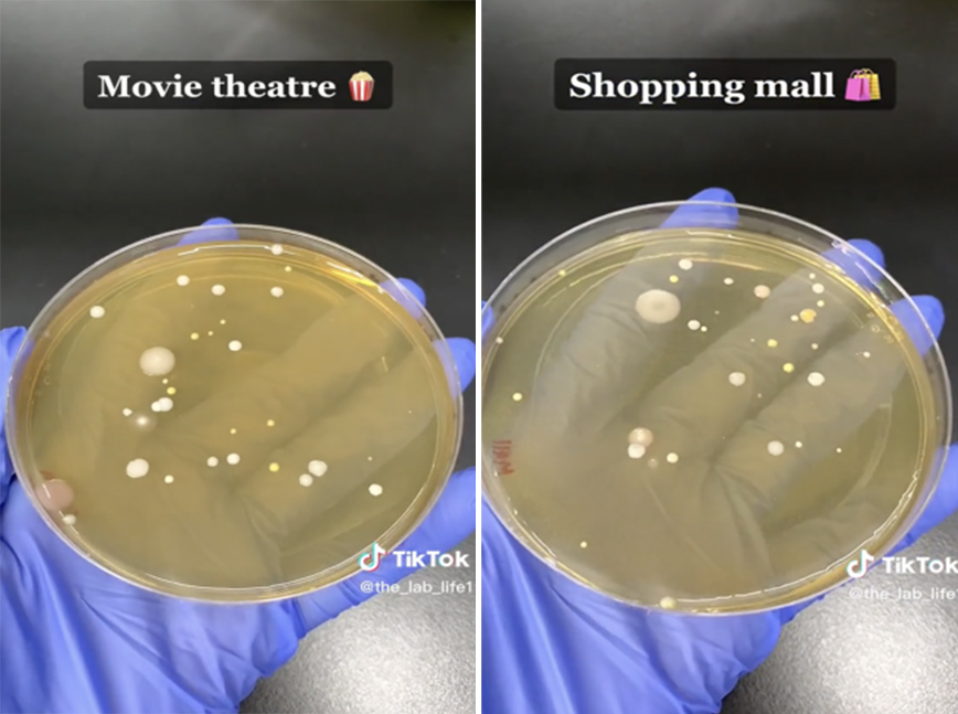 Ο λογαριασμός @the_lab_life1, δοκίμασε τρεις διαφορετικούς στεγνωτήρες, σε τρία διαφορετικά σημεία για να διαπιστώσει τον αριθμό των βακτηρίων τα οποία σπρώχνονται μέσω του ζεστού αέρα προς τα χέρια μας.