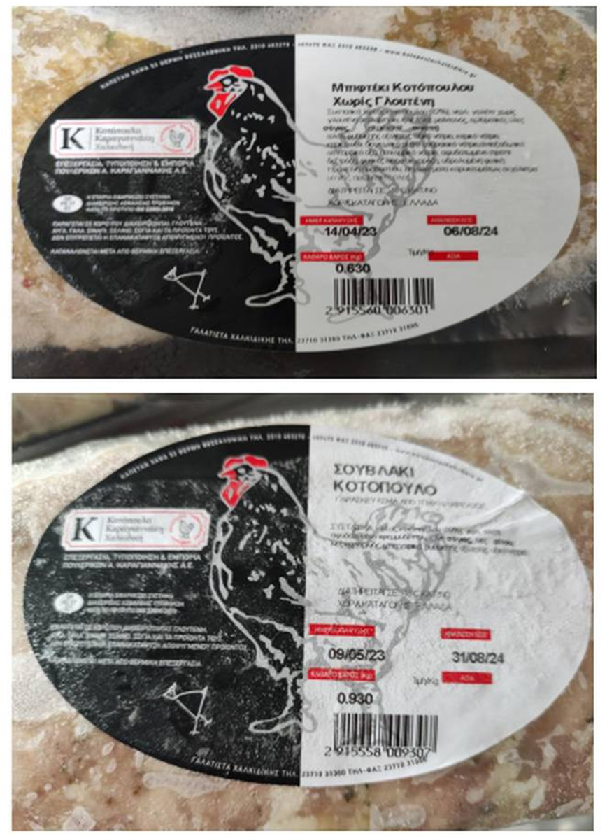 Συγκεκριμένα ο ΕΦΕΤ και ειδικότερα η Περιφερειακή Διεύθυνση Κεντρικής Μακεδονίας, κατά τη διενέργεια ελέγχων προέβη σε δειγματοληψία κατεψυγμένων παρασκευασμάτων κρέατος με τα στοιχεία: 1) ΜΠΙΦΤΕΚΙ ΚΟΤΟΠΟΥΛΟΥ ΧΩΡΙΣ ΓΛΟΥΤΕΝΗ με ημερομηνία ανάλωσης 06/08/2024 και ημερομηνία παραγωγής / κατάψυξης 14/04/2023 και 2) ΣΟΥΒΛΑΚΙ ΚΟΤΟΠΟΥΛΟ, με ημερομηνία ανάλωσης 31/08/2024 και ημερομηνία παραγωγής / κατάψυξης 09/05/2023 που παράγονται από την εταιρεία «ΠΤΗΝΟΤΡΟΦΙΚΕΣ ΕΠΙΧΕΙΡΗΣΕΙΣ Α. ΚΑΡΑΓΙΑΝΝΑΚΗΣ Α.Ε. – Κοτόπουλα Καραγιαννάκη Χαλκιδικής».