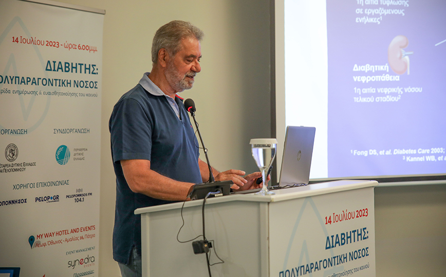 Χαιρετισμό στην ημερίδα, που είχε τίτλο «Διαβήτης: Πολυπαραγοντική νόσος», έκανε ο Αντιπεριφερειάρχης Αχαΐας Χαράλαμπος Μπονάνος, αναφερόμενος στο έργο της Περιφέρειας ενημέρωσης και τις δράσεις που απευθύνονται όχι μόνον στους ασθενείς αλλά στο ευρύ κοινό, αναπτύσσοντας την ενσυναίσθηση για τη πανδημία του διαβήτη, ενώ την εναρκτήρια εισήγηση έκανε ο νεφρολόγος και πρόεδρος της Ιατρικής Εταιρείας Δυτικής Ελλάδας και Πελοποννήσου, Περικλής Δουζδαμπάνης, τονίζοντας τη σημασία ημερίδων όπως η συγκεκριμένη, προσφέροντας επικαιροποιημένη ενημέρωση.
