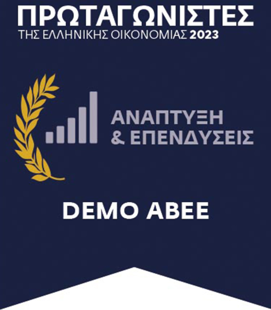 Η DEMO, ηγέτιδα εταιρεία στον κλάδο της φαρμακοβιομηχανίας, βραβεύτηκε στους Πρωταγωνιστές της Ελληνικής Οικονομίας, στην κατηγορία «Ανάπτυξη & Επενδύσεις» της 8η ομώνυμης διοργάνωσης, ως επιχείρηση με σημαντικές επενδύσεις που στηρίζει την εγχώρια οικονομία.