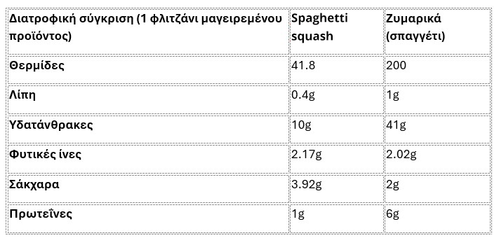 Το spaghetti squash είναι επίσης χωρίς γλουτένη, καθιστώντας το εξαιρετική επιλογή για όσους ακολουθούν gluten-free διατροφή.