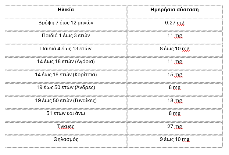 Συστάσεις πρόσληψης σιδήρου ανά ηλικία