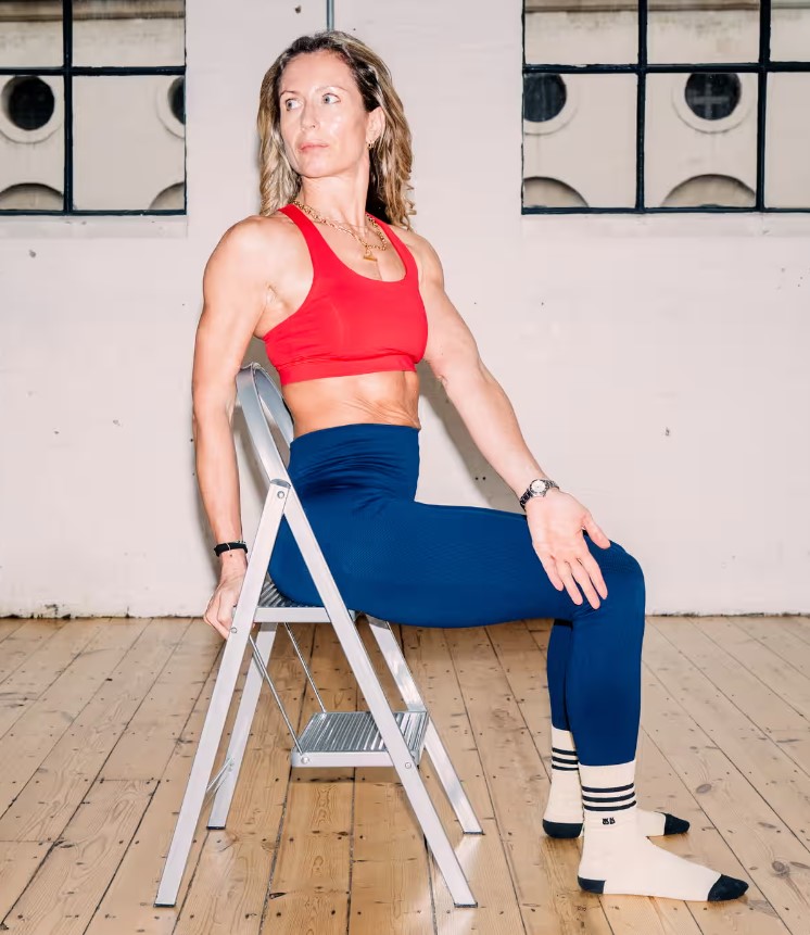 - Κάθισε σε μια καρέκλα με τα πόδια ανοιχτά στο άνοιγμα των γοφών.