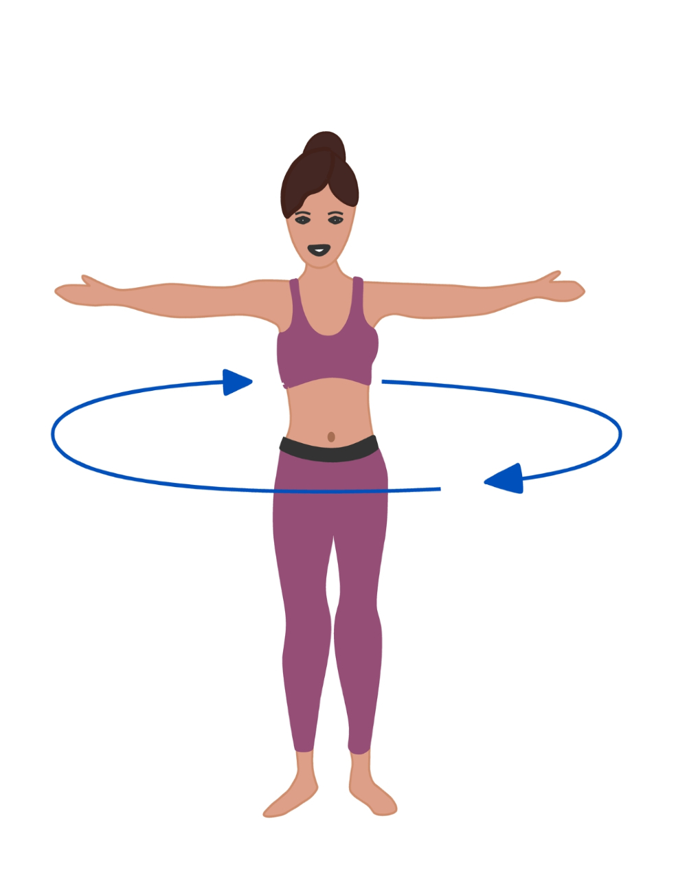 Πώς θα εκτελέσετε την άσκηση: Όρθιοι, με τα χέρια ανοιχτά στο πλάι και τις παλάμες προς τα κάτω, αρχίζετε να περιστρέφεστε από τα αριστερά προς τα δεξιά.