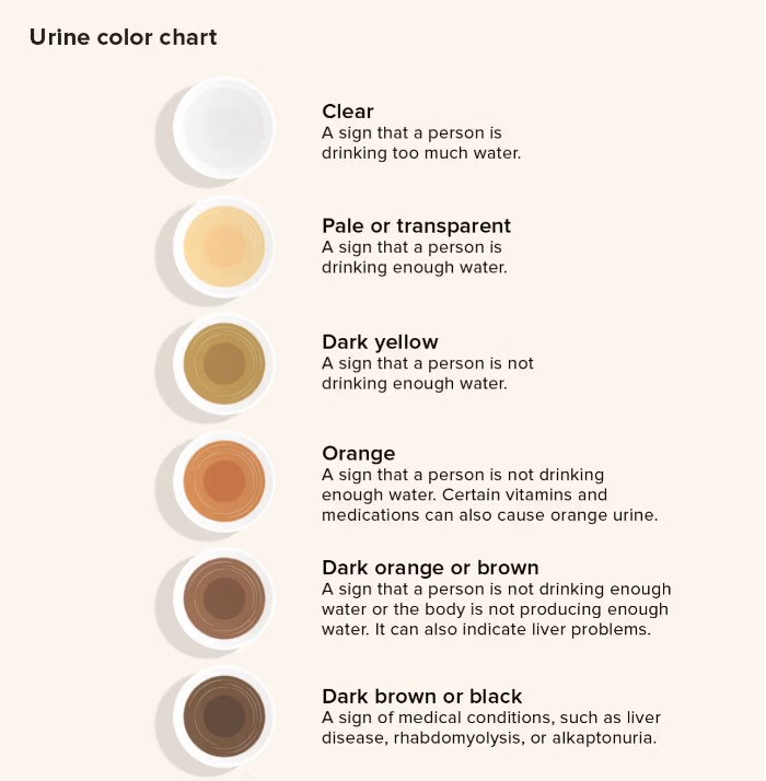 Το χρώμα των ούρων μπορεί επίσης να παρέχει ενδείξεις για την υγεία μας, σύμφωνα με το Health Line. Η φυσιολογική απόχρωση κυμαίνεται από ανοιχτό κίτρινο έως κεχριμπαρένια, ανάλογα με την ενυδάτωση.