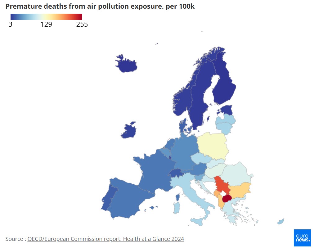 Η ατμοσφαιρική ρύπανση αποτελεί μία από τις σοβαρότερες απειλές για τη δημόσια υγεία στην Ευρώπη, προκαλώντας εκατοντάδες χιλιάδες πρόωρους θανάτους κάθε χρόνο.