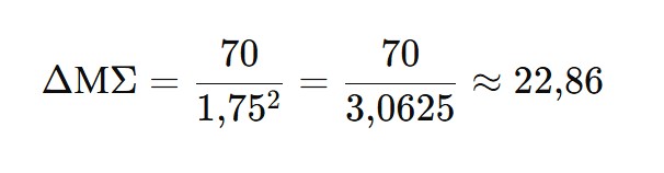 Για παράδειγμα, αν ζυγίζεις 70 κιλά και έχεις ύψος 1,75 μέτρα, ο υπολογισμός γίνεται ως εξής: