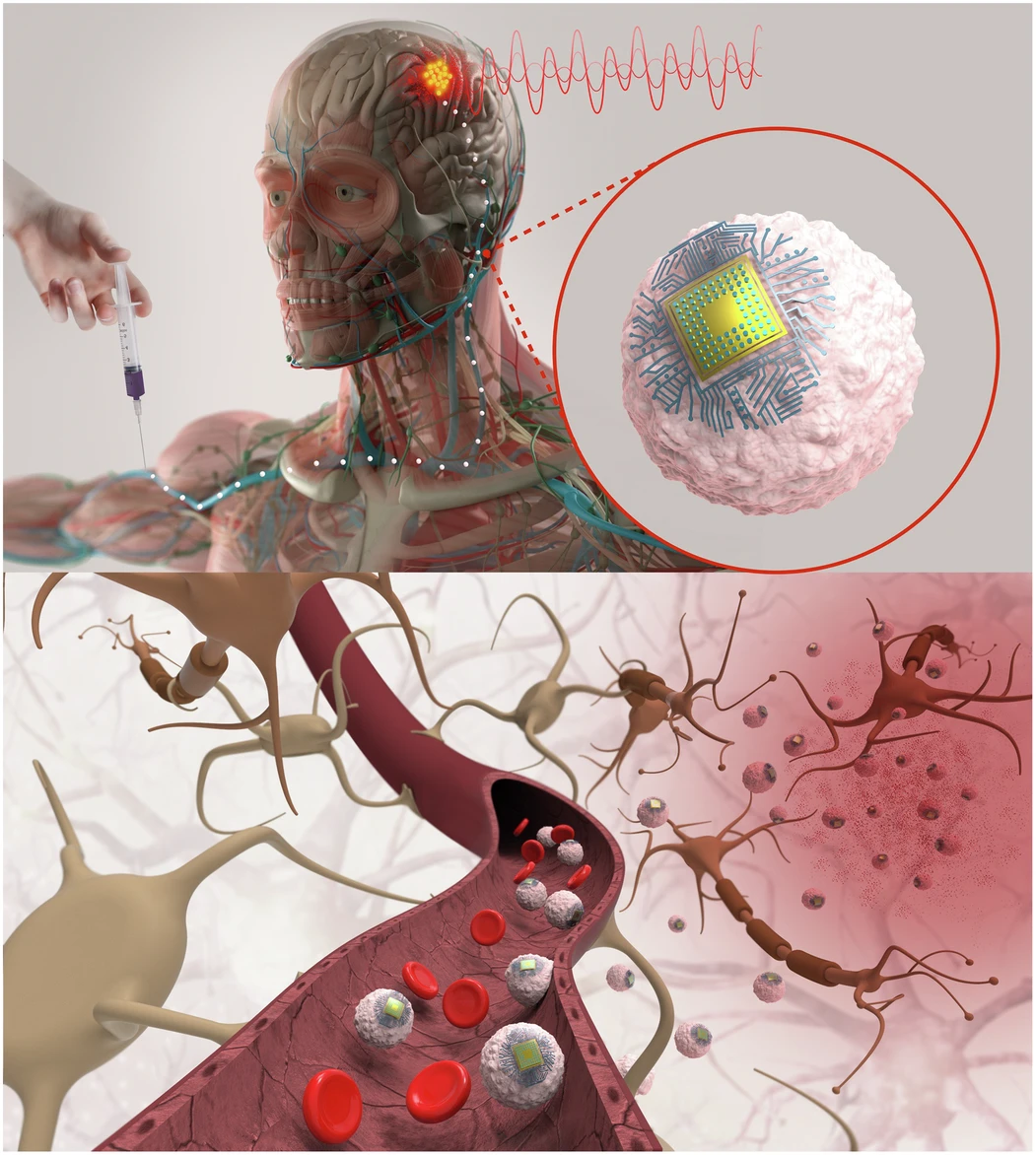 Η ομάδα ανέπτυξε μικροσκοπικές, ασύρματες βιοηλεκτρονικές συσκευές, οι οποίες μπορούν να εγχέονται στο κυκλοφορικό σύστημα, να ταξιδεύουν μέσα από αυτό και να αυτοεμφυτεύονται σε συγκεκριμένες περιοχές του εγκεφάλου – χωρίς καμία ανάγκη για νυστέρι.
