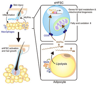 Όπως εξηγούν, μετά από έναν τραυματισμό στο δέρμα, τα λιπώδη κύτταρα άρχισαν να διασπούν τα αποθηκευμένα λιπίδια μέσω της διαδικασίας της λιπόλυσης. Αυτό είχε ως αποτέλεσμα την απελευθέρωση λιπαρών οξέων στην επιδερμίδα, τα οποία λειτούργησαν ως σήμα για την ενεργοποίηση των βλαστοκυττάρων της τρίχας.