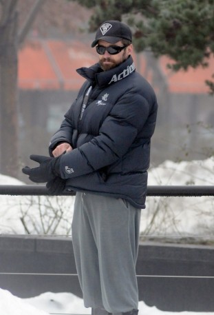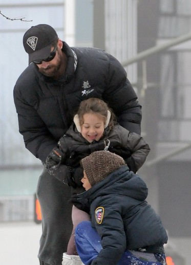 Ο φακός απαθανάτισε tον Χιοy Τζάκμαν μαζί με τη σύζυγό του και τα παιδιά τους στη χιoνισμένη Νέα Υόρκη. Ο Τζάκμαν δεν σταμάτησε να παίζει με τα παιδιά του στο χιόνι και να φιλάει τη γυναίκα του.
