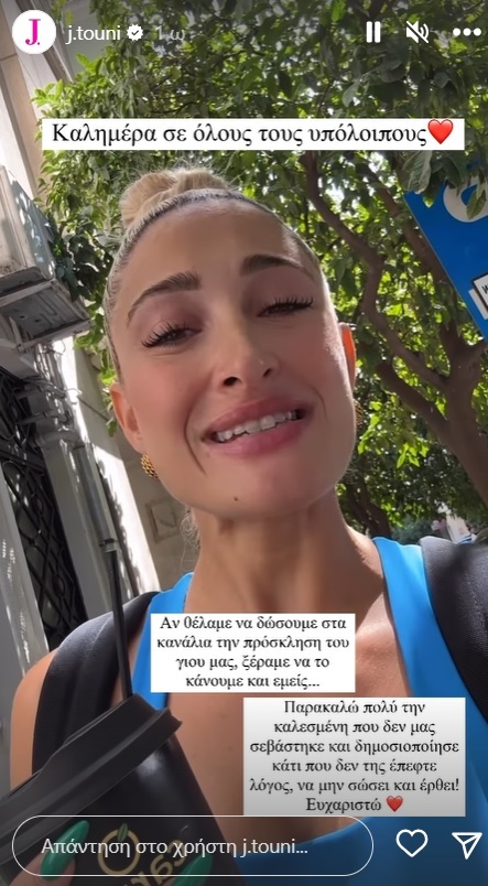 Η αποκάλυψη της πρωινής εκπομπή του Star έφτασε στα αυτιά της Ιώαννας Τούνη, η οποία εμφανίστηκε ιδιαίτερα εκνευρισμένη στα story της στο Instagram και έγραψε χαρακτηριστικά «να μη σώσει» να πάει στη βάπτιση εκείνη που διέρρευσε το prive προσκλητήριο.