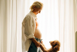 Στην πρώτη από τις φωτογραφίες με τη φουσκωμένη κοιλιά της που ανέβασε στο Instagram η γνωστή ηθοποιός ποζάρει με το σκυλάκι της. Στη δεύτερη, η Γιούλικα Σκαφιδά κρατά το υπερηχογράφημα του μωρού.