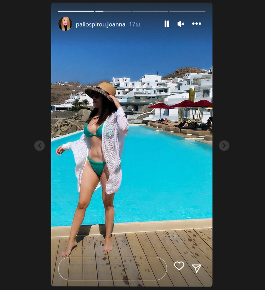 Σε άλλο της βίντεο πριν από 15 περίπου ημέρες η Ιωάννα Παλιοσπύρου πόζαρε με ένα ολόσωμο μαγιό και φόντο το απέραντο γαλάζιο.
