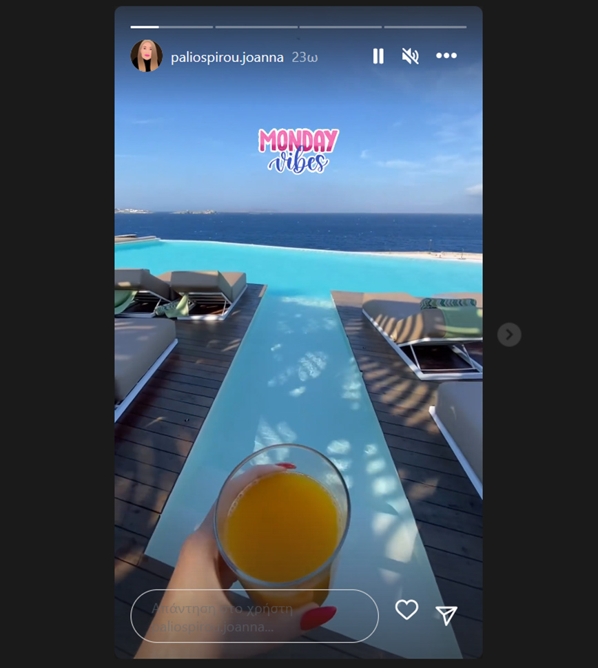 Όπως φαίνεται από τα stories της βρίσκεται σε κάποιο νησί και απολαμβάνει τον ήλιο.