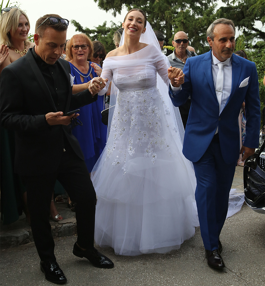 Όταν την είδε φανερά συγκινημένος της είπε: «Είσαι πολύ όμορφη». Φίλησε το χέρι της πεθεράς του, έσκυψε να φιλήσει τη νύφη και σχολίασε με χιούμορ πως άργησε.