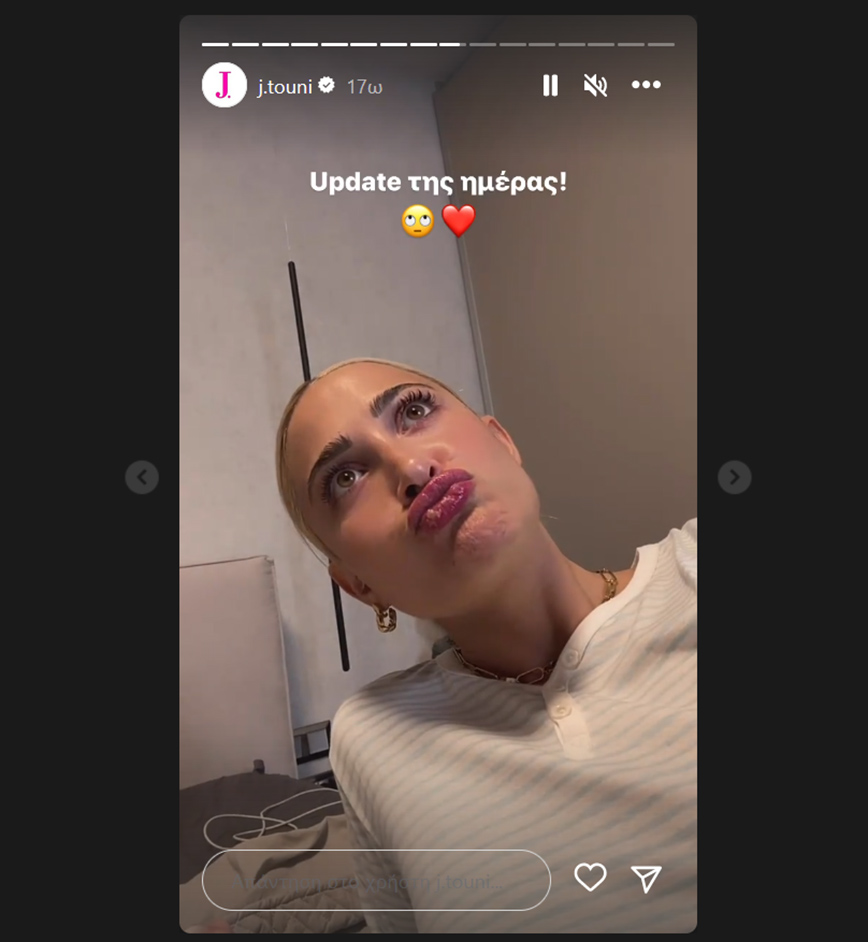 Το απόγευμα της Δευτέρας, η Ιωάννα Τούνη δημοσίευσε ένα βίντεο στα stories της στο Instagram λέγοντας πως επειδή δεν θέλουν να τσακώνονται, θα έκαναν συνεδρία couples therapy. Οι δυο τους θέλουν να λύσουν κάποια θέματα που έχουν προκύψει στη σχέση τους, κάτι που δείχνει ότι εκτιμά ο ένας τον άλλο.