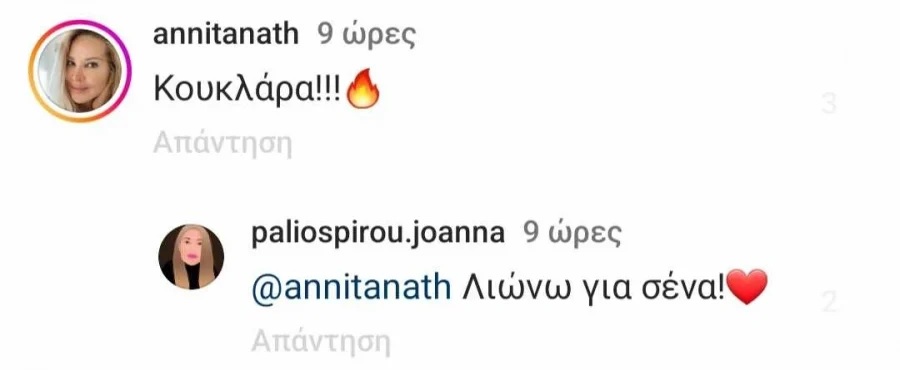 Και η πολύ καλή της φίλη πλέον, η Αννίτα Ναθαναήλ την αποθέωσε με το σχόλιό της. Οι δυο του ήρθαν πιο κοντά, όταν εκείνη αποφάσισε να στηρίξει την Ιωάννα σε όλον αυτόν τον «Γολγοθά» που είχε να περάσει κι από τότε είναι αχώριστες.