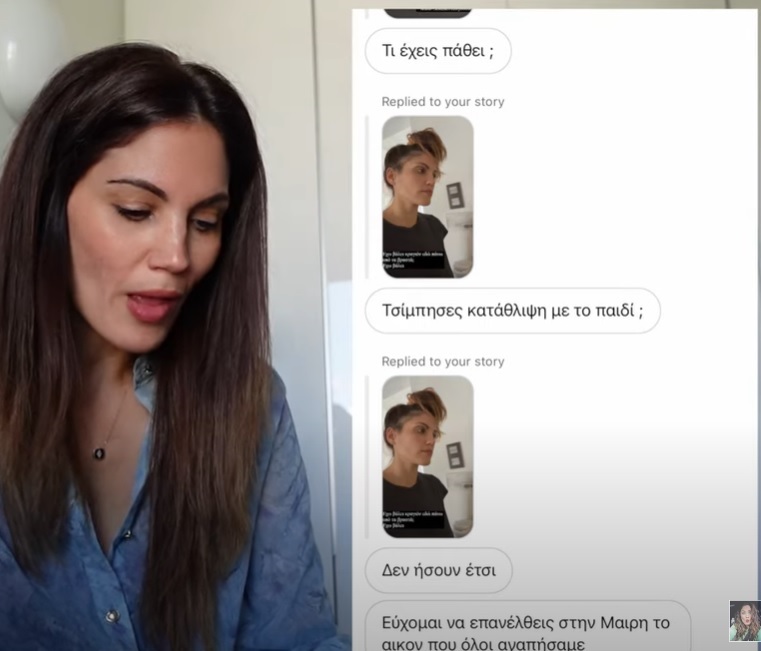 Και απάντησε: «Αυτό το μήνυμα έχει να κάνει με την ανοχή ή τη μη ανοχή που έχει κάποιος στην αλλαγή που θα έχεις ως προσωπικότητα. Εγώ ως άνθρωπος φοβόμουν πάρα πολύ την αλλαγή και ενώ ξεκίνησα ψυχοθεραπεία πάρα πολύ μικρή, είχα πολύ μεγάλη αντίσταση… Με διέλυε αυτό, με άγχωνε πως θα αντιμετωπίσουν οι άλλοι την αλλαγή…Είχε μία δόση αλήθειας αυτό το μήνυμα. Μία δόση αλήθειας, για την οποία δεν μιλάμε συχνά στο θέμα της μητρότητας. Δεν μιλάμε συχνά για το «πένθος» όταν αφήνεις τη γυναίκα που ήσουν μέχρι αυτή τη στιγμή πίσω και γίνεσαι μία άλλη. Δεν μιλάμε για το πόσο δύσκολο είναι αυτό, για το πόσο μπορεί να το κλάψει η κάθε μία, πόσο θα τη ζορίσει, πόσο θα την μπερδέψει…Δεν μιλάμε για αυτό, γιατί μας υπερβαίνει το θαύμα της ζωής και όλη τη χαρά που φέρνει».