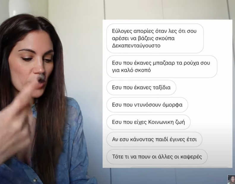 Στην εισαγωγή του βίντεό της στο κανάλι της στο You Tube, η influencer κάνει έναν μικρό πρόλογο για να μας πει αρχικά πως: «Σκέφτομαι να κάνουμε μία σειρά από τέτοια βίντεο για να απαντάω σε σχόλια ιδιαίτερα πληγωτικά, πονετικά. Δεν είναι ένα βίντεο σαν το “απαντάω στους haters” που είχα κάνει παλαιότερα…Θέλω να ξεκινήσω με ένα μήνυμα που εκφράζει μία θέση και μία άποψη που μπορεί να σε πληγώσει περισσότερο στη ζωή».
