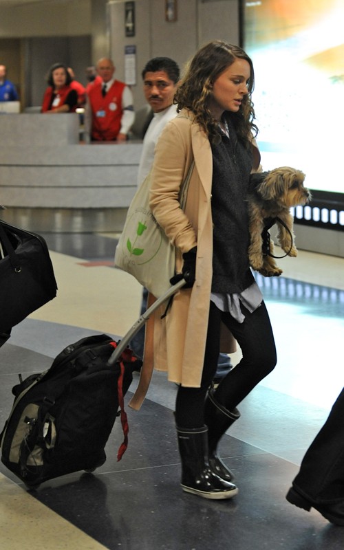 Χτες ο φακός την συνέλαβε στο αεροδρόμιο του Λος Άντζελες. Φορτωμένη με τις βαλίτσες και το σκύλο της η Νάταλι φορούσε φαρδιά ρούχα, μάλλον για να καλύπτει τη κοιλιά της.