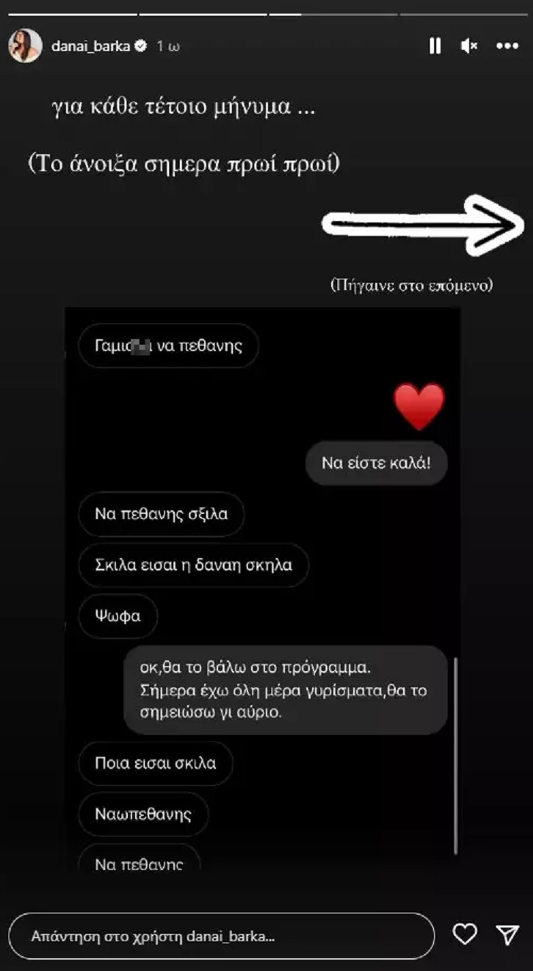 Η Δανάη Μπάρκα σε ανάρτησή της στο Instagram αναφέρθηκε στα υβριστικά μηνύματα που δέχθηκε κι έδωσε απάντηση σε αυτά με τον δικό της ξεχωριστό τρόπο.