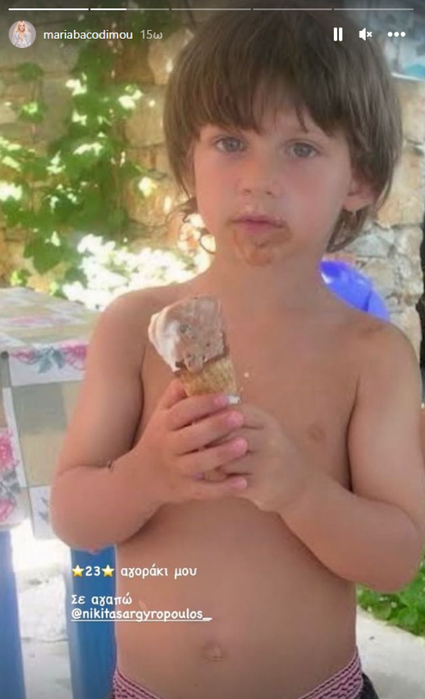 Σε Instagram story που δημοσίευσε την Παρασκευή 3 Νοεμβρίου η Μαρία Μπακοδήμου, έγραψε για τον Νικήτα Αργυρόπουλο, τον μεγαλύτερο από τους δύο γιούς της: «23, αγοράκι μου. Σε αγαπώ».