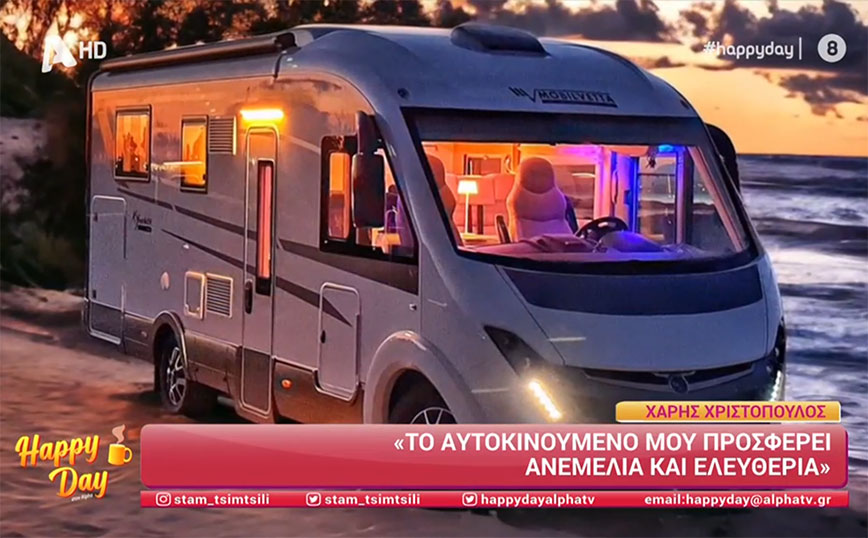 Λάτρης του αυτοκινούμενου τουρισμού είναι ο φωτογράφος Χάρης Χριστόπουλος ο οποίος υποδέχθηκε τη δημοσιογράφο Όλγα Λαφαζάνη και την κάμερα του «Happy Day» προκειμένου να τους ξεναγήσει στο δικό του εντυπωσιακό όχημα.