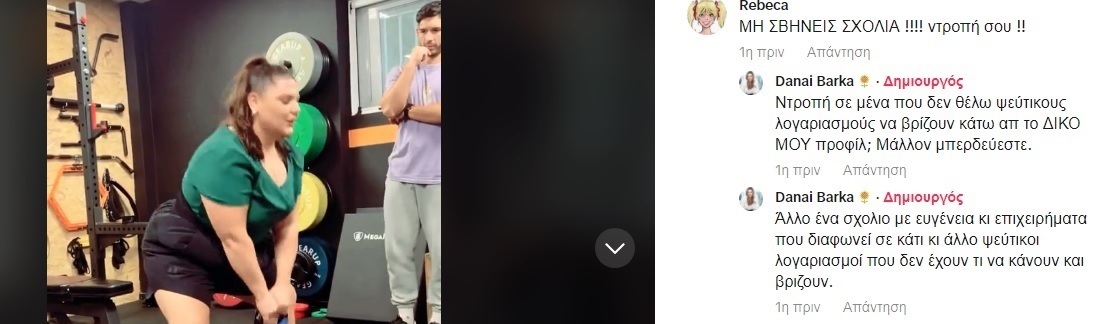 Κάποια ωστόσο ήταν από ψεύτικους λογαριασμούς και υβριστικά, με τη Δανάη Μπάρκα να τα διαγράφει.