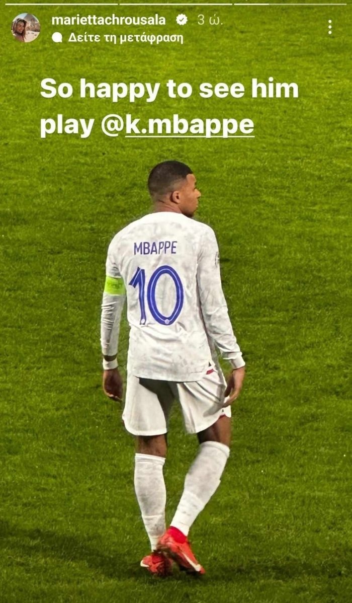 Συγκεκριμένα η γνωστή παρουσιάστρια σχολίασε πως για αρκετή ώρα νόμιζε πως έβλεπε τον Κιλιάν Μπαπέ, ο οποίος βρισκόταν στον πάγκο για περίπου 65′. «Αρχικά νόμιζα ότι παίζει ο Εμπαπέ και κάποια στιγμή ακούω να λένε ”α ετοιμάζεται, τώρα θα μπει” και λέω ”δεν έπαιζε τόση ώρα;”», ανέφερε γελώντας.