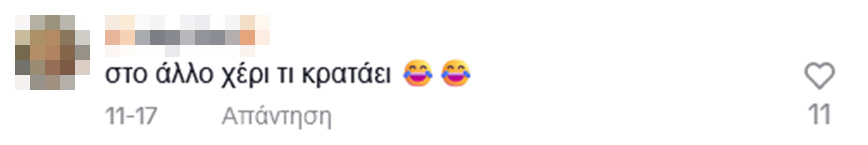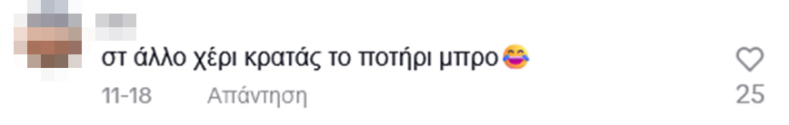 «Τι κρατάει ακριβώς στο χέρι;» αναφέρει ένα σχόλιο κάτω από βίντεο. «Στο άλλο χέρι κρατάς το ποτήρι» προσθέτει άλλος χρήστης του TikTok.
