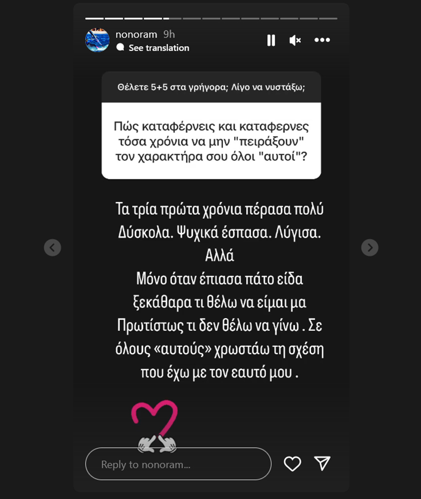 «Πώς καταφέρνεις και κατάφερνες τόσα χρόνια να μη πειράξουν τον χαρακτήρα σου όλοι αυτοί;» ήταν η ερώτηση που της έγινε και η Ελεονώρα Μελέτη αποκρίθηκε: «Τα τρία πρώτα χρόνια πέρασα πολύ δύσκολα. Ψυχικά έσπασα, λύγισα, αλλά μόνο όταν έπιασα πάτο είδα ξεκάθαρα τι θέλω να είμαι, μα πρωτίστως τι δεν θέλω να γίνω. Σε όλους “αυτούς” χρωστάω τη σχέση που έχω με τον εαυτό μου».
