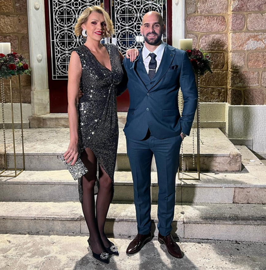 Η Σάσα Σταμάτη για τον γάμο της ανιψιάς της φόρεσε μία λαμπερή δημιουργία, που είχε την υπογραφή της αδελφής του, Βασίλειου Κωστέτσου, Πόλας Κωστέτσου.