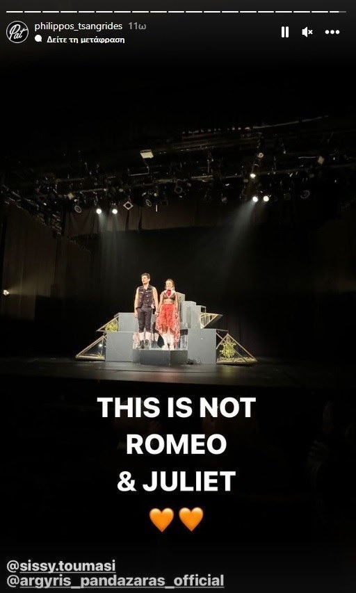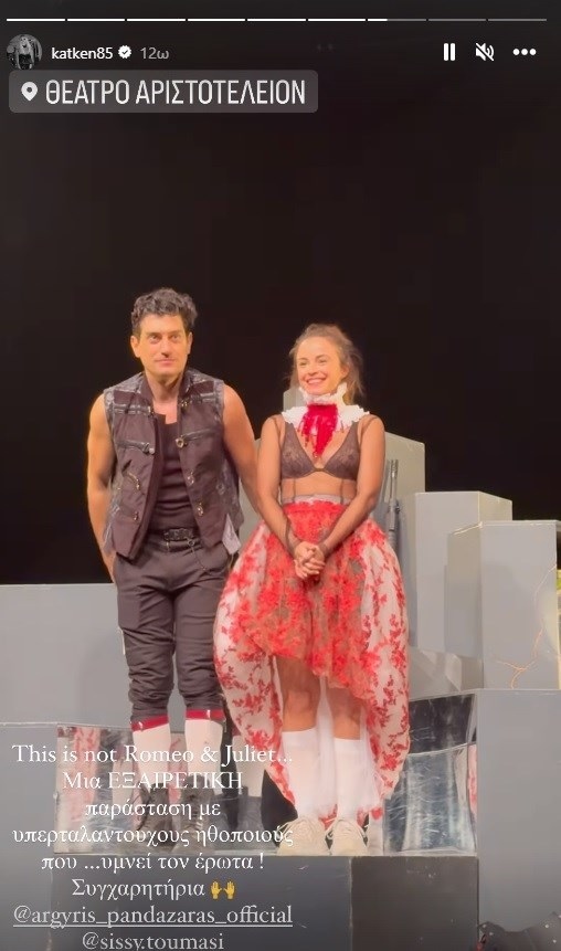 Οι δυο πρώην τώρα δεν βρέθηκαν στον ίδιο χώρο μόνο το βράδυ της Παρασκευής, 8 Δεκεμβρίου. Μετά τη διασκέδαση στο ίδιο νυχτερινό κέντρο, όπου έκανε πρεμιέρα ο Κωνσταντίνος Αργυρός, το βράδυ της Κυριακής (10/12), παρακολούθησαν την ίδια θεατρική παράσταση, «Τhis is not Romeo and Juliet», με τον Αργύρη Πανταζάρα και τη Σίσσυ Τουμάση.