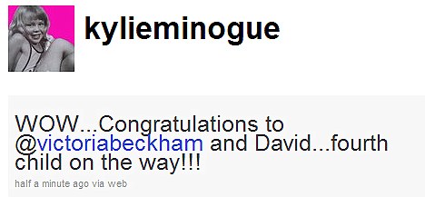 Ανάμεσα στους πρώτους που έδωσαν συγχαρητήρια στο ζευγάρι ήταν η Κylie Minogue, η οποία έγραψε στη σελίδα της στο twitter «Ουάου, συγχαρητήρια στο Ντέιβιντ και στη Βικτόρια… έρχεται το τέταρτο παιδί».