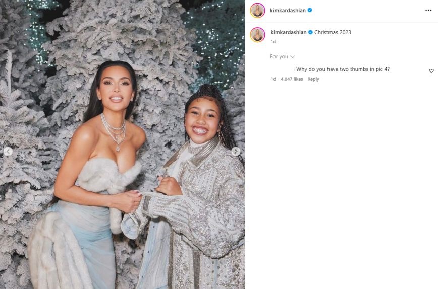 «Γιατί έχεις δύο αντίχειρες στην τέταρτη φωτογραφία;» έγραψε ένας από τους διαδικτυακούς της φίλους ενώ ένας άλλος ανέφερε: «Φωνάζει για ατύχημα της AI». Άλλος τόνισε πως: «Lol όλοι ξέρουμε ότι η Κιμ είναι διαβόητη για το photoshop».