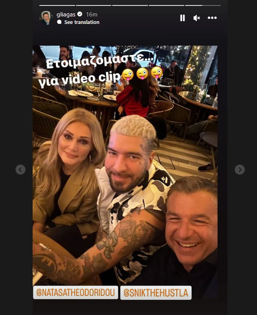 Στην συνέχεια, ο Γιώργος Λιάγκας δημοσίευσε ένα άλλο καρέ στο οποίο φαίνεται και η Νατάσα Θεοδωρίδου και έγραψε στη λεζάντα: «Ετοιμαζόμαστε για video clip».