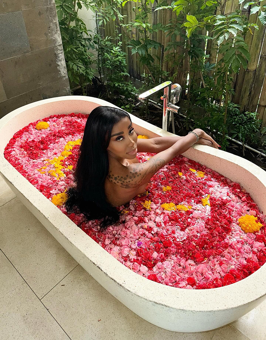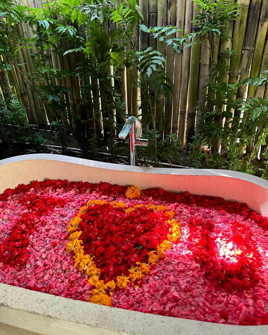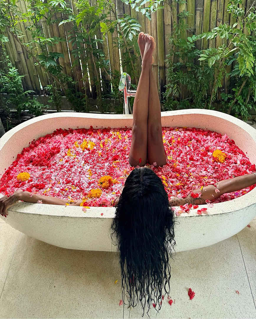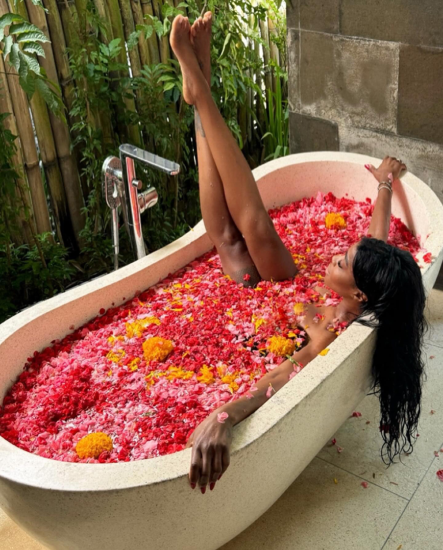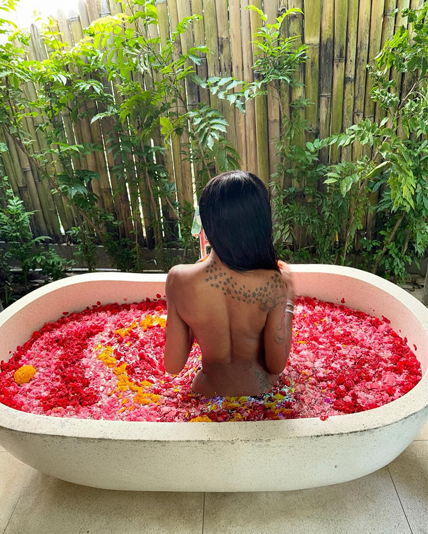 Στις τελευταίες φωτογραφίες που δημοσίευσε στον προσωπικό της λογαριασμό στο Facebook, η Ελίζαμπεθ Ελέτσι απολαμβάνει το μπάνιο της μέσα σε μια μπανιέρα γεμάτη ροδοπέταλα σε ένα ειδυλλιακό τοπίο στο Μπαλί.