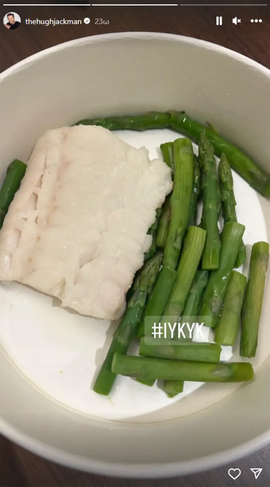 Με μια ανάρτησή του στο Instagram μοιράστηκε τα εξαιρετικά λιτά φαγητά, που απαρτίζουν τη διατροφή του. Στις φωτογραφίες, που ανέβασε μέσω stories, φαίνεται πως τρώει μικρές φέτες ψαριού, λίγα σπαράγγια και μια φέτα λεμόνι ή μια φέτα ψάρι. Ακόμη, τρώει φασόλια, λίγο τυρί και ψιλοκομμένο μπρόκολο.