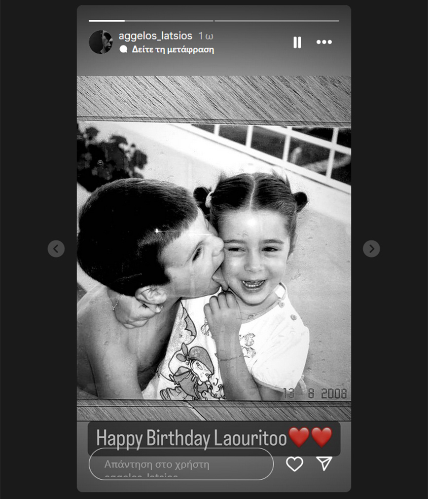 Ο γιος της Ελένης Μενεγάκη και του Γιάννη Λάτσιου έγραψε στη φωτογραφία «Χρόνια πολλά Λαουρίτο», με δύο κόκκινες καρδιές σε emoji.